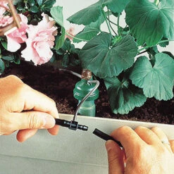 As the water level falls in the bag the drip rate will vary – to get the most even flow hang the bag with its bottom outlet just above the drippers.