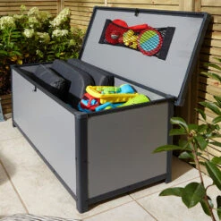 Easy Access – with full size, hinged, lift up lid. A locking bracket is included so if you add a padlock (not included) this will secure the contents.