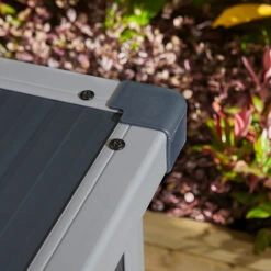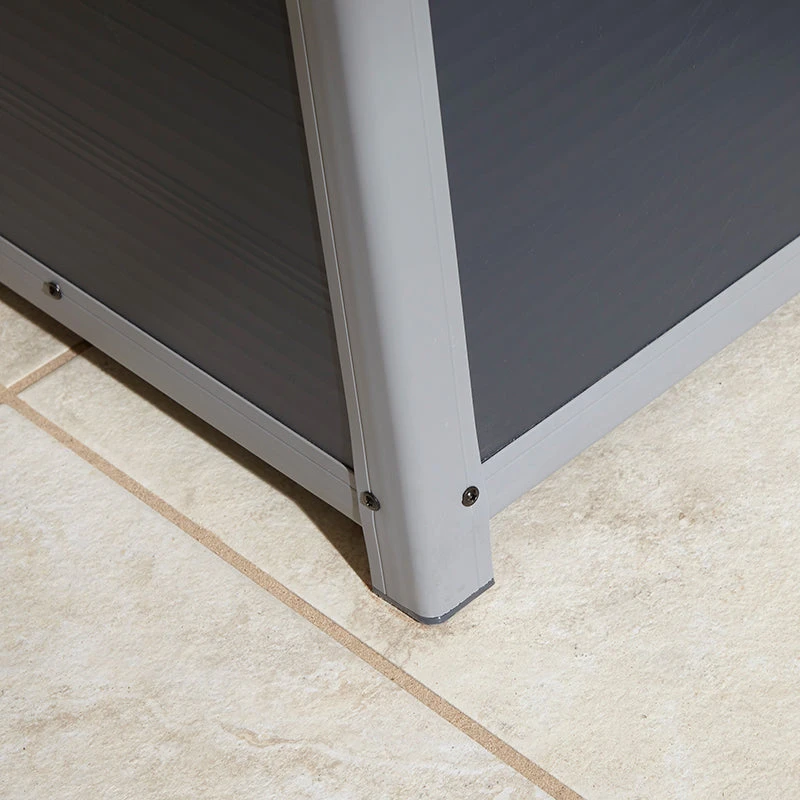 Sturdy, Weatherproof, Polypropylene Construction – 1.5mm thick plastic column frame and 12mm twin wall fluted panels forming the sides, base and lid. This UV protected material is low maintenance, simply wash clean with soapy water.