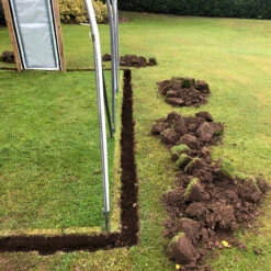Traditional Foundation Tubes – this allotment tunnel has a cover which is trenched into the ground. Therefore the foundation tubes supplied simply need to be knocked in the ground, leaving 34-45cm protruding into which the hoops will be fitted.