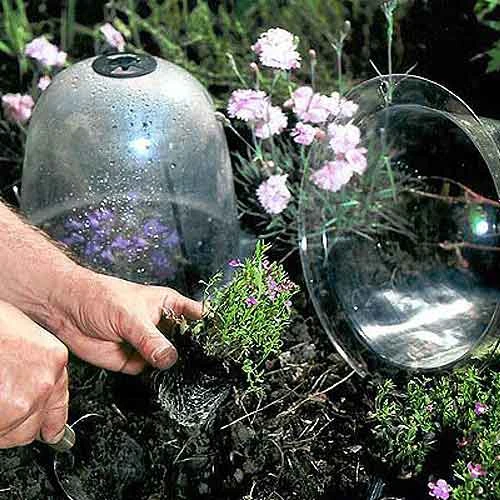 Adjustable air vent in the top of each cloche allows ventilation and humidity control.