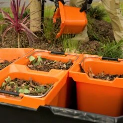 Complete with four super strong 20 litres buckets – made from premium 3mm polypropylene strengthened with extra ribbing. The carrying handles are made from 6mm zinc coated steel wire with comfort moulded hand grips. The handles are top mounted to allow easy access and enables them to be stacked and stored on site and in work vehicles. These buckets have both internal and external litre markings. Two will fit snuggly into the width of the barrow. Four fill the main space of the barrow and allow you to divide contents into smaller, more manageable containers which can be lifted out and emptied or filled as required.