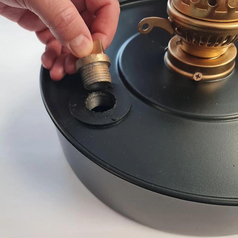 Screw the burner in place, adjusting the wicks to the bottom position using the adjusting screws. Once in position the wicks take about one hour to saturate with paraffin – never light the wicks when they are dry.