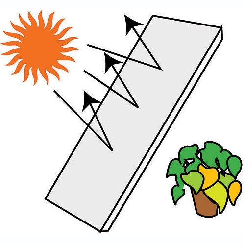 Reacts to the weather – when it’s dry it turns white, reflecting the rays of the sun to protect from heat & glare. When wet or damp it becomes clearer, restoring light transmission.