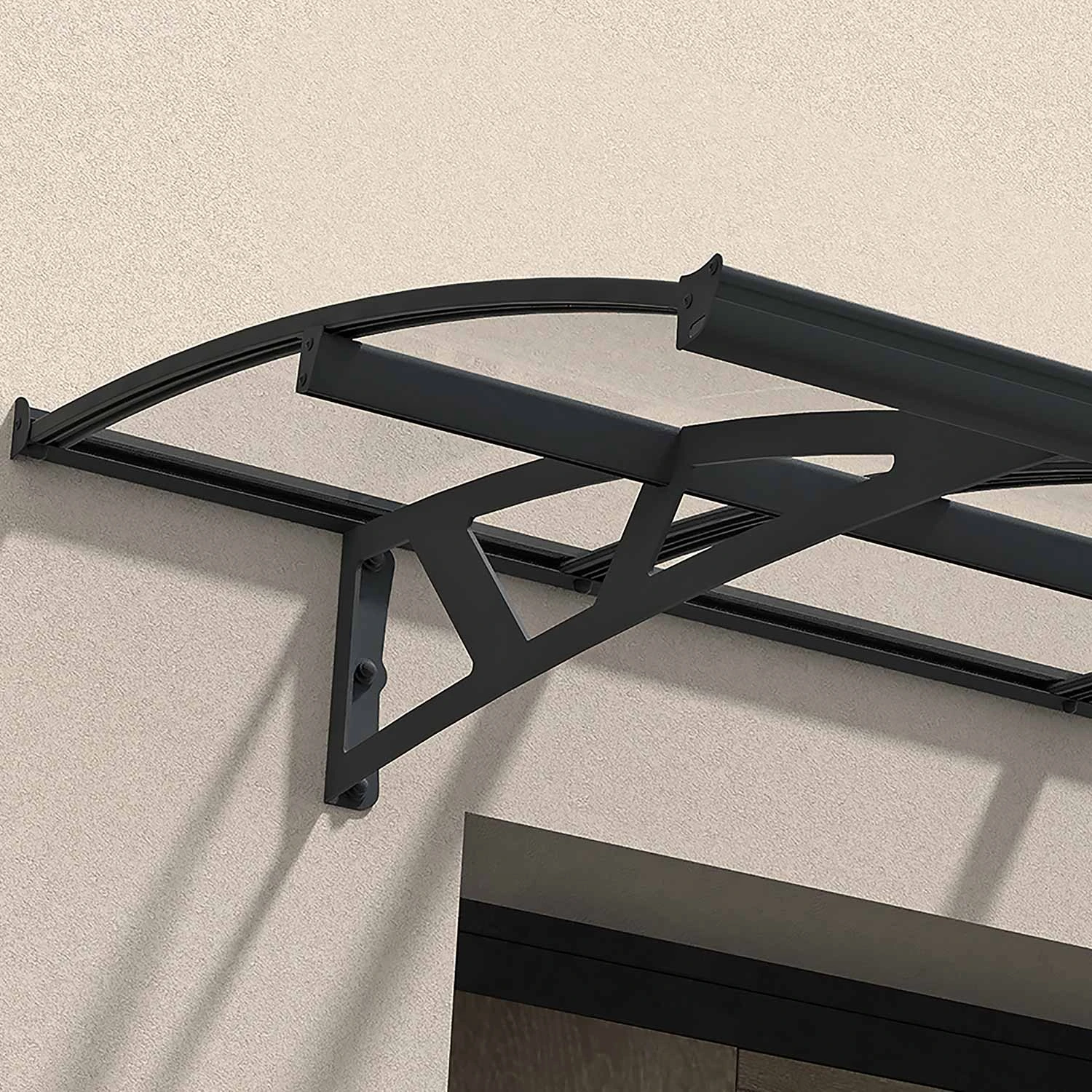 This door canopy is delivered flat packed for self-assembly. You will need a spirit level, tape measure, pencil, drill, screwdriver, spanner and silicon sealant during assembly. It features a screw-free roofing assembly system, specially developed to prevent rain / dew leaks. A wall anchoring kit suitable for attaching the canopy to a concrete or solid brick wall is included.