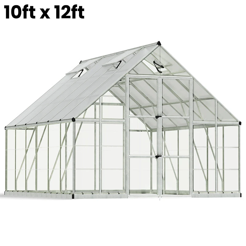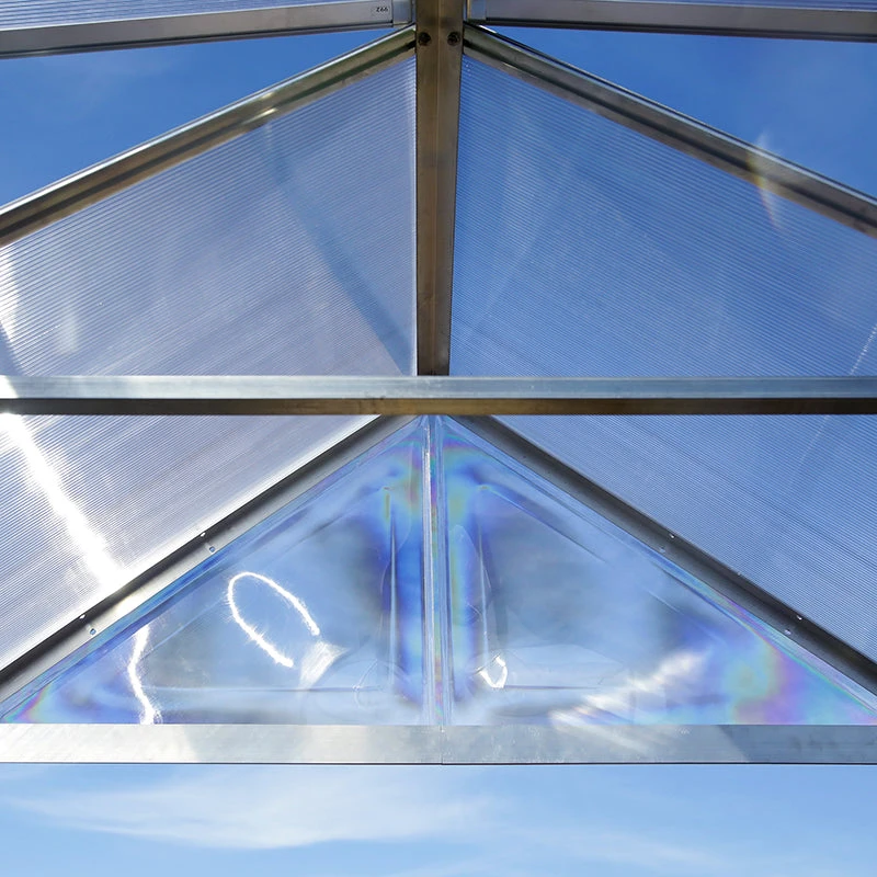 Two Types Of Polycarbonate Glazing For Optimal Growth – roof panels are made from twin-wall polycarbonate to produce diffused light so protecting plants from scorching by strong sunshine. The wall panels are made from crystal clear polycarbonate which provides over 90% light transmission. Both glazing panel types are virtually unbreakable, high impact and flexible. Being 100% UV protected they will not discolour, fracture, or shatter, providing many years of use.