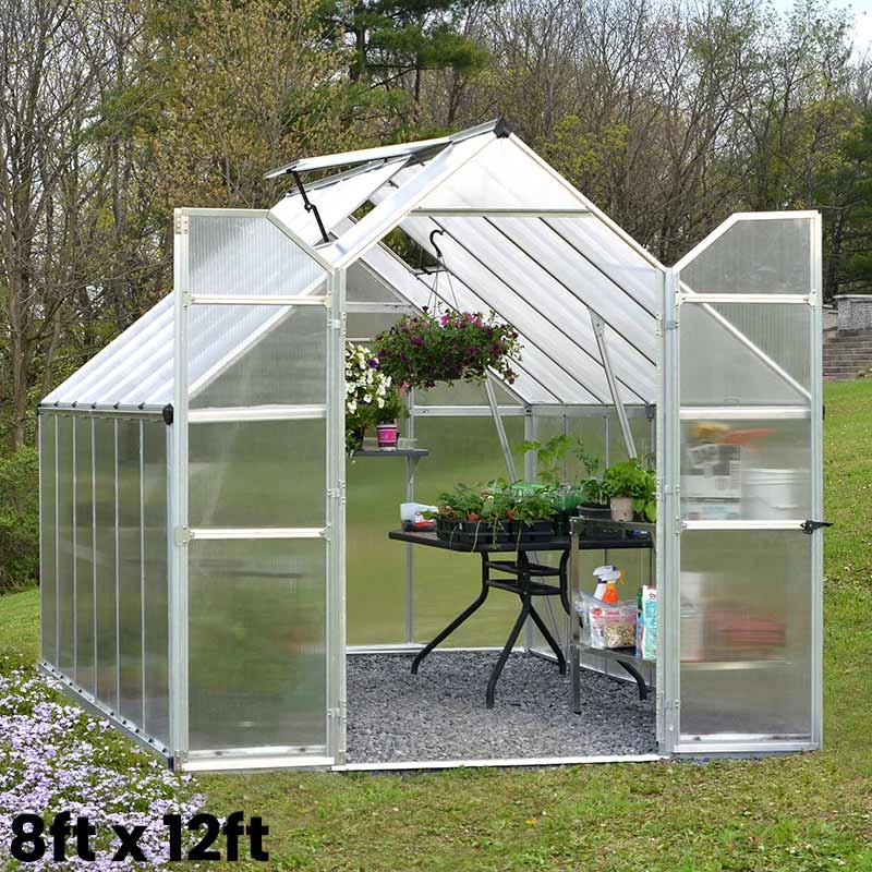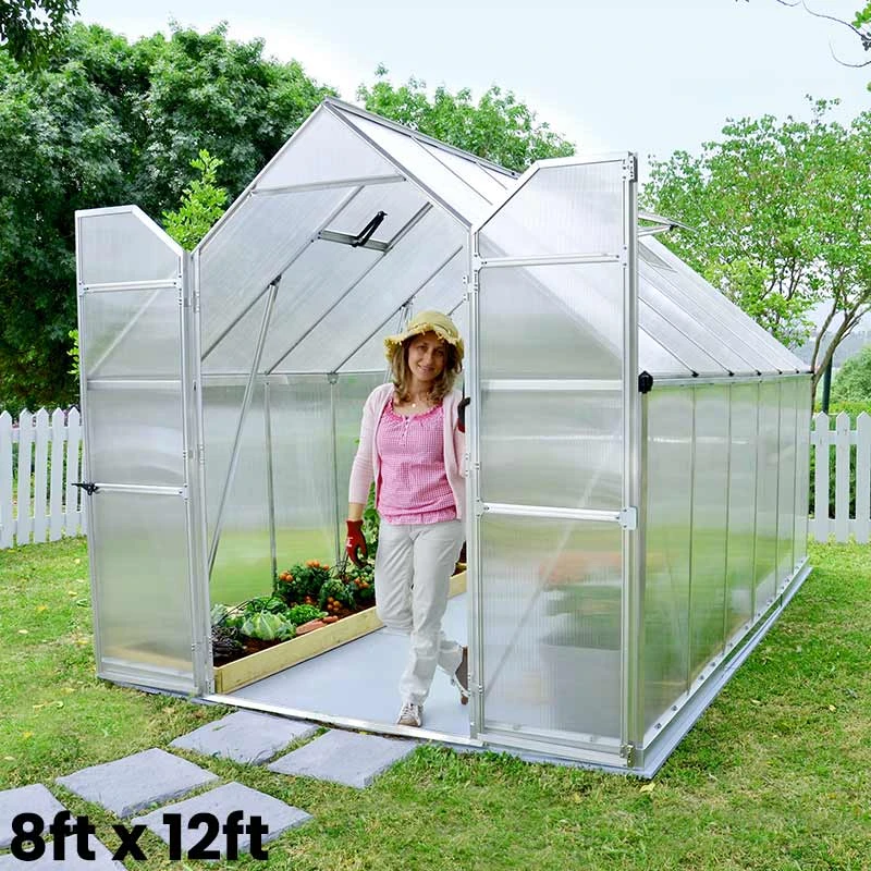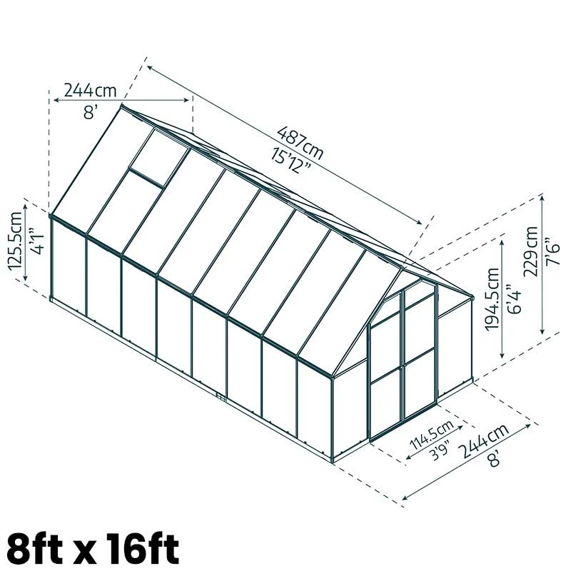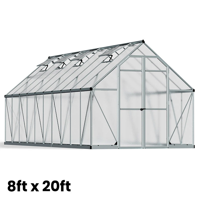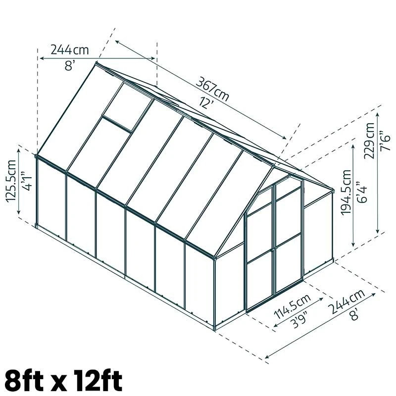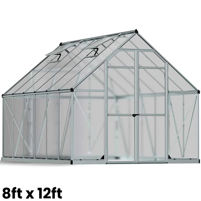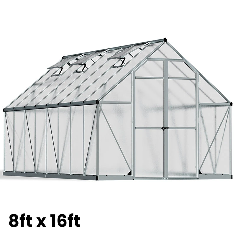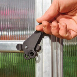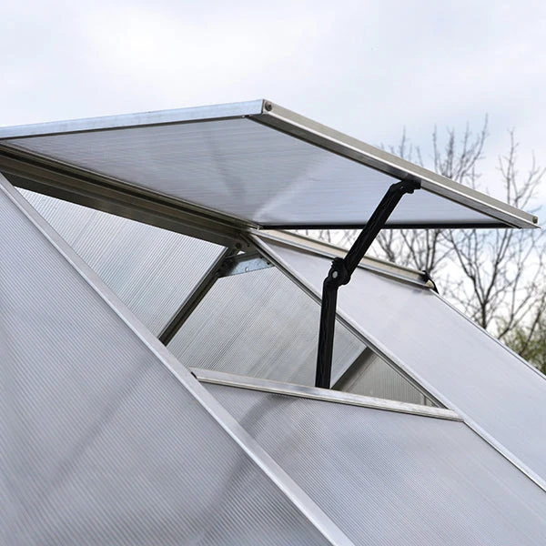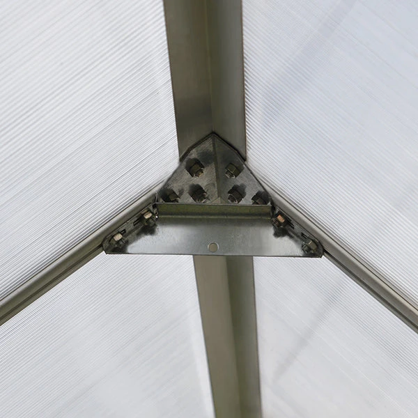 Heavy Duty Aluminium Frame – provides a highly durable, maintenance free, rust resistant and extra-rigid structure. For added strength this greenhouse features extra ridge brackets and extra support bars running from the roof to the sides of the greenhouse.