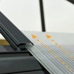 Two Types Of Polycarbonate Glazing For Optimal Growth – roof panels are made from twin-wall polycarbonate to produce diffused light so protecting plants from scorching by strong sunshine. The wall panels are made from crystal clear polycarbonate which provides over 90% light transmission. Both glazing panel types are virtually unbreakable, high impact and flexible. Being 100% UV protected they will not discolour, fracture or shatter, providing many years of use.