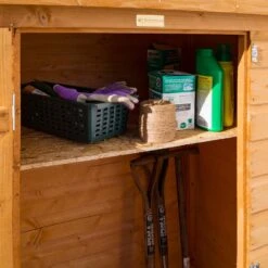 12mm Shiplap Cladding – consisting of wooden panels that overlap in such a way that they create a flatter surface and more weather resistant than other types of cladding. All four sides of the store are supplied as complete panels ready to be joined together, helping reduce the time required for assembly.
